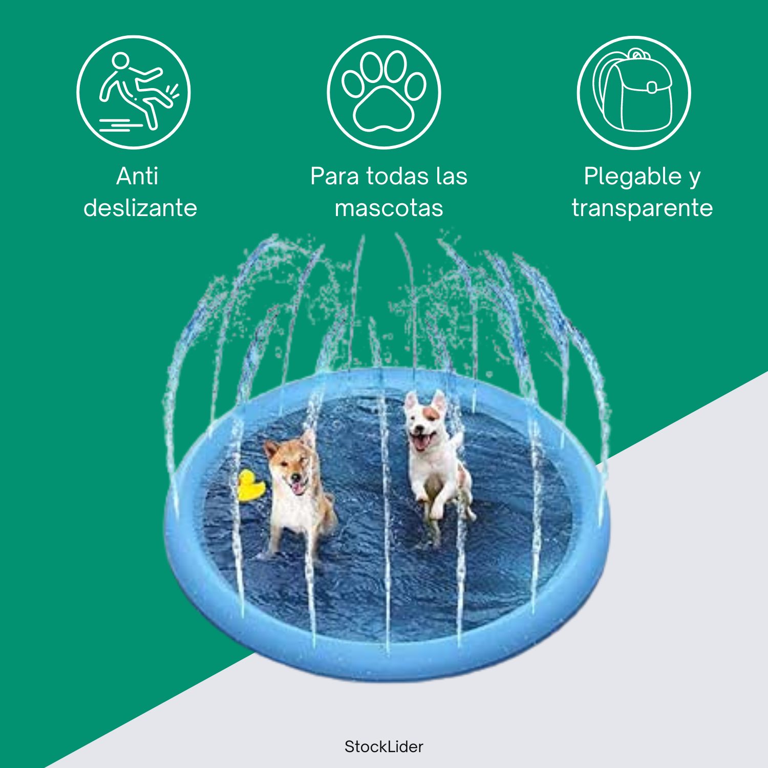 Piscina plegable para perros: La alfombrilla de pulverización de agua para mascotas se puede plegar para un fácil transporte y almacenamiento, puedes llevarla a cualquier lugar.