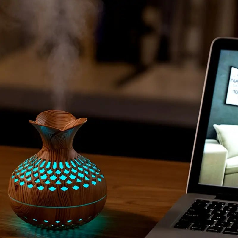 Este humidificador no solo combate la sequedad del aire, sino que también es perfecto para crear un ambiente relajante con fragancias aromáticas. Úsalo con aceites esenciales para personalizar tu entorno y disfrutar de un bienestar completo.