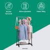 Longitud ajustable: Ajusta y extiende la altura de la barra en el colgador de barra ajustable para satisfacer tus necesidades. Ya sea una falda larga, abrigo o suéter, la longitud del colgador puede variar. 360 rodillos flexibles: El colgador de rodillos está equipado con 4 ruedas lisas. Este diseño te permite colgar fácilmente la ropa y empujarla en cualquier lugar. No más la molestia de llevar ropa pesada de un lugar a otro. Espacio de almacenamiento inferior: Hay un estante en la parte inferior, puedes poner tus zapatos, bolsos, cajas o más accesorios favoritos para reducir la presión en el armario. Ideal para extender el espacio de almacenamiento colgante del armario Base antideslizante y resistente al desgaste: Buen material de buena calidad, antideslizante y resistente al desgaste. Los deflectores de engranajes se instalan en los cuatro extremos para evitar eficazmente que el colgador se deslice cuando sopla el viento Uso multiescena: El perchero se coloca en cualquier rincón de tu hogar, y complementará inmediatamente tus muebles y espacio. Esta hermosa exhibición es decorativa y funcional.