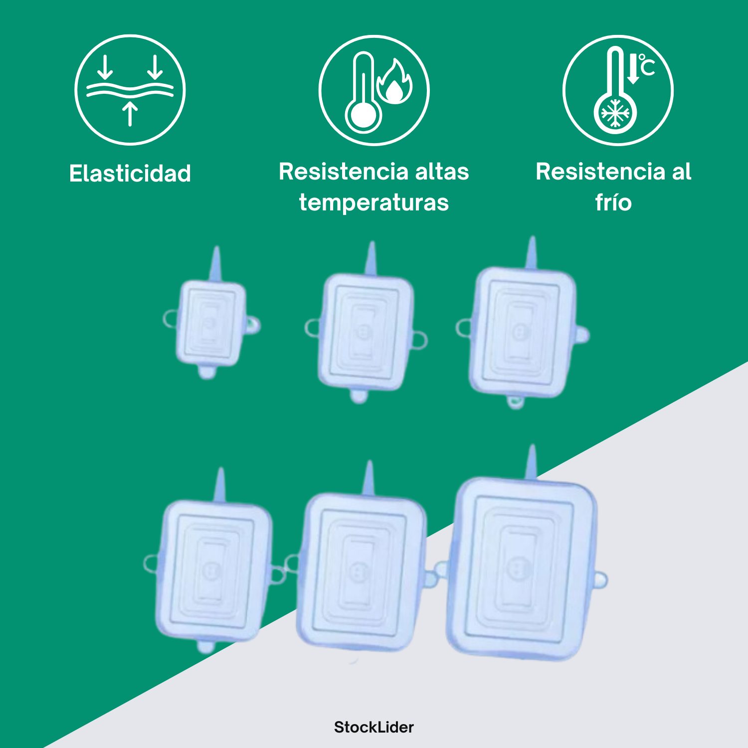 Las tapas silicona ajustables cocina están fabricado con material de silicona de alta calidad alimentaria, tiene una textura suave y resistente . Tiene una excelente resistencia a la abrasión, es natural e inofensivo, no tóxico, inodoro y no corrosivo. El pack esta compuesto de tapas de diferentes tamaños para asegurar su sellado.