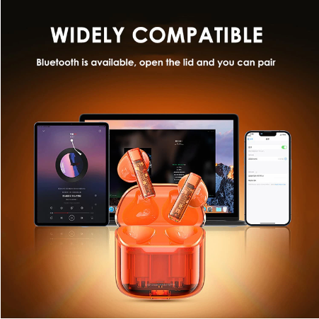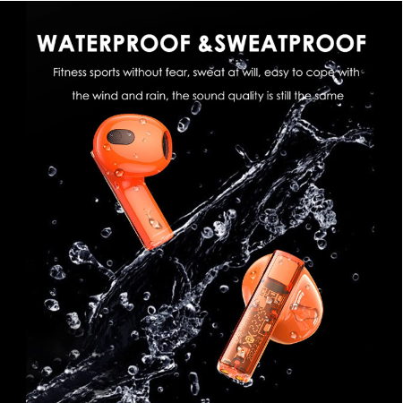 Con los Auriculares Transparentes V13 PLUS, experimentarás lo último en tecnología inalámbrica. Equipados con Bluetooth 5.3, disfrutarás de una velocidad de transmisión más rápida y un rango más amplio. El emparejamiento rápido permite una conexión automática con el último dispositivo emparejado tan pronto como abras el estuche de carga. Además, su compatibilidad universal te permite conectarlos con una amplia gama de dispositivos, desde iPhones y Androids hasta tabletas y más. Y con su resistencia al agua IPX4, podrás llevarlos contigo a cualquier actividad deportiva sin preocupaciones.