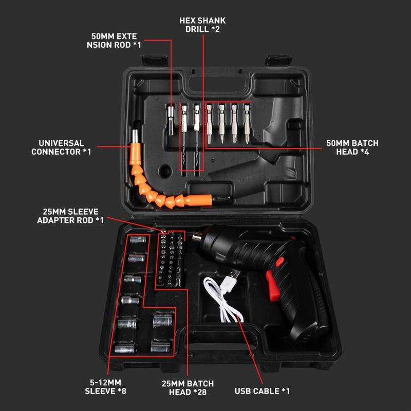 Haz tus proyectos de bricolaje más fáciles con el Destornillador Recargable y sus 45 accesorios. Este destornillador versátil y potente es ideal para cualquier tarea, desde ensamblar muebles hasta reparaciones domésticas, ofreciendo comodidad y eficiencia.