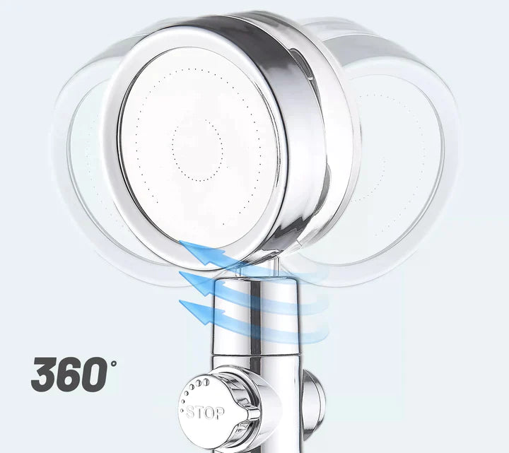 Nuestro cabezal ofrece una experiencia de ducha única. Este cabezal genera un flujo de agua turbo alimentado en forma de molino, que le permiten lavarse y enjuagarse rápidamente mientras recibe una ducha terapéutica esplendida, lo dejará con la sensación de recibir un masaje profesional después de un día largo y duro.