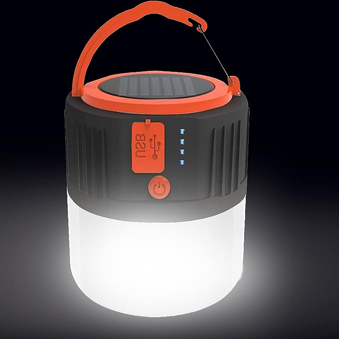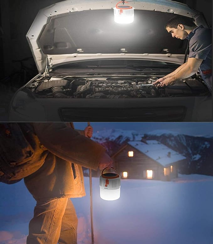 Esta lámpara 3 en 1 puede utilizarse como linterna, lámpara de camping y lámpara de mesa, con cinco modos de iluminación regulables y una batería recargable de 2400 mAh que se puede cargar a través de USB o energía solar. Además, su material de alta calidad y resistencia al agua la hacen adecuada para actividades al aire libre con lluvia ligera o nieve.