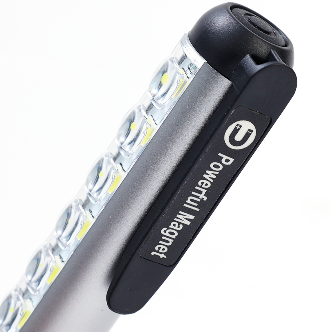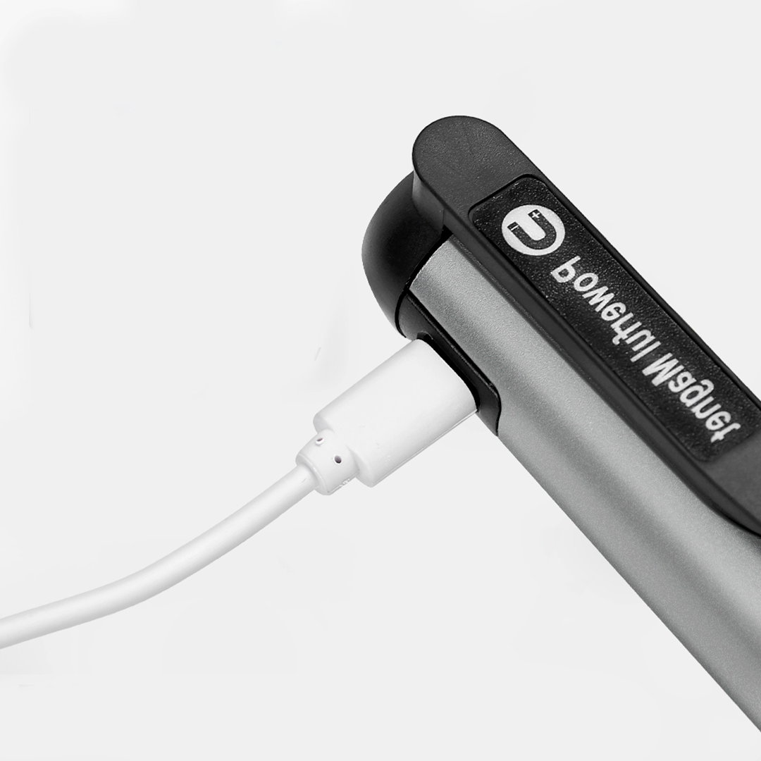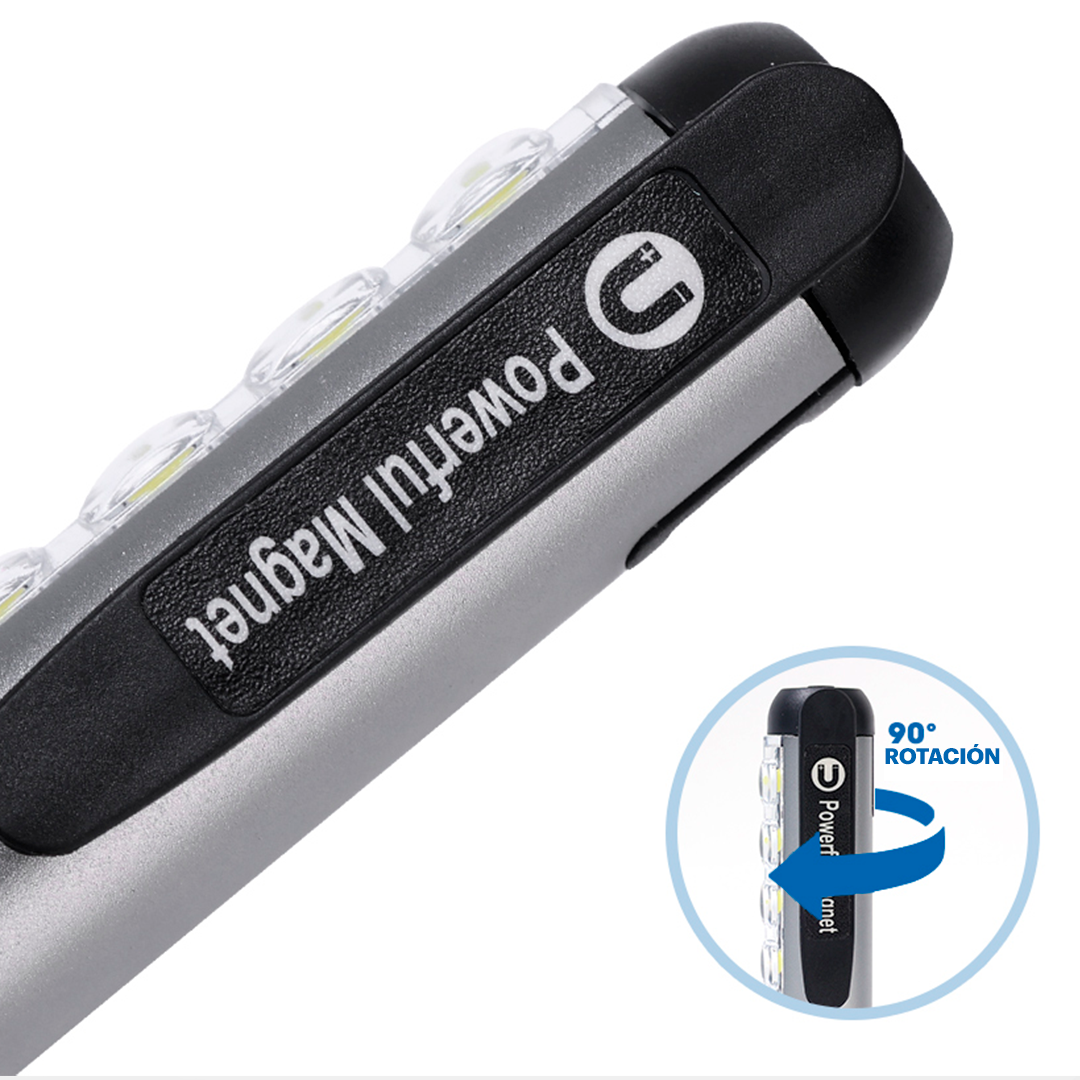 una linterna con imán, lista para ser utilizada en tus aventuras al aire libre. Su diseño práctico con imán te permite colocarla en superficies metálicas, dejando las manos libres para otras tareas.