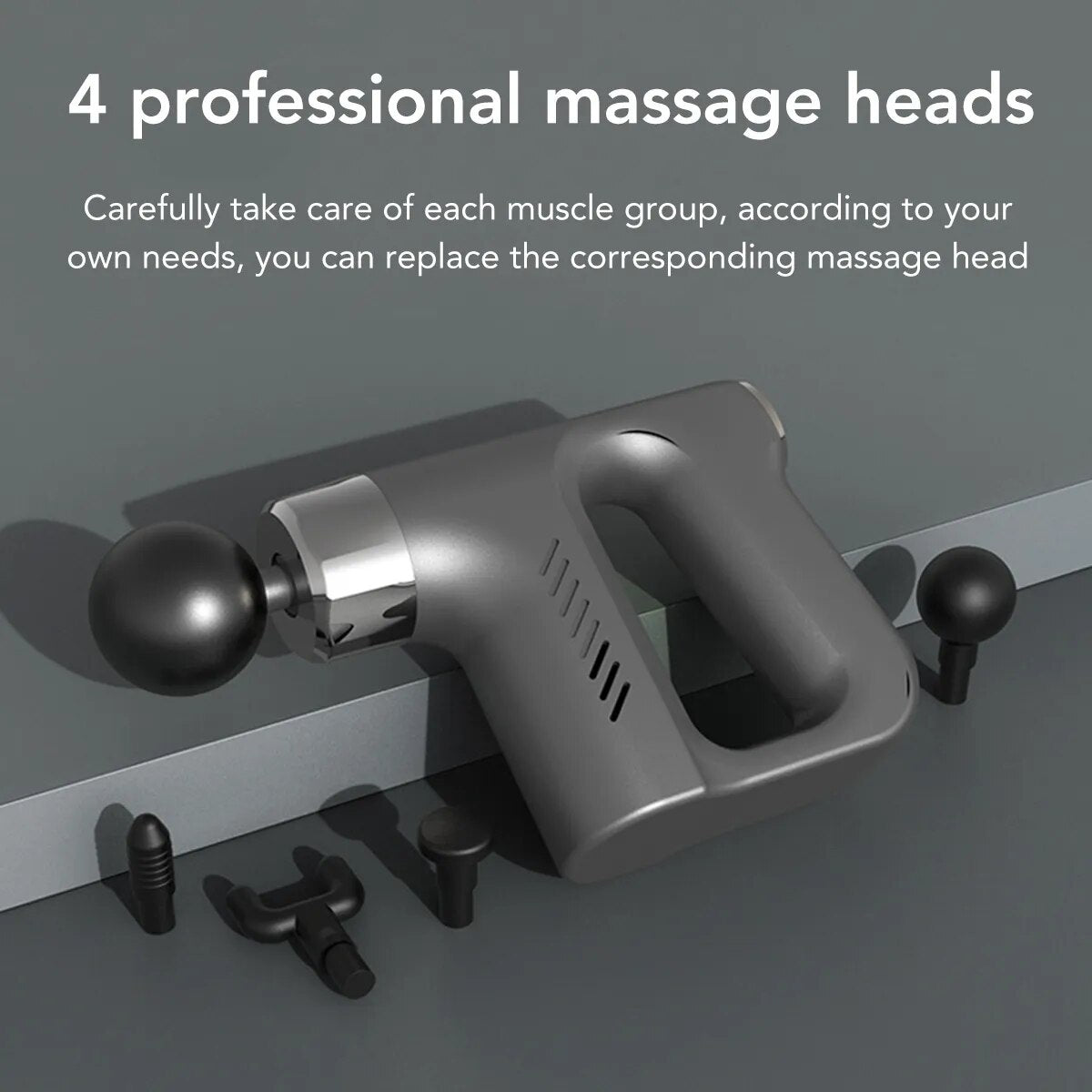 Pistola de masaje eléctrica de 4 cabezales, masajeador relajante muscular deportivo táctil LCD, masajeador Musle de tejido profundo de 5 engranajes