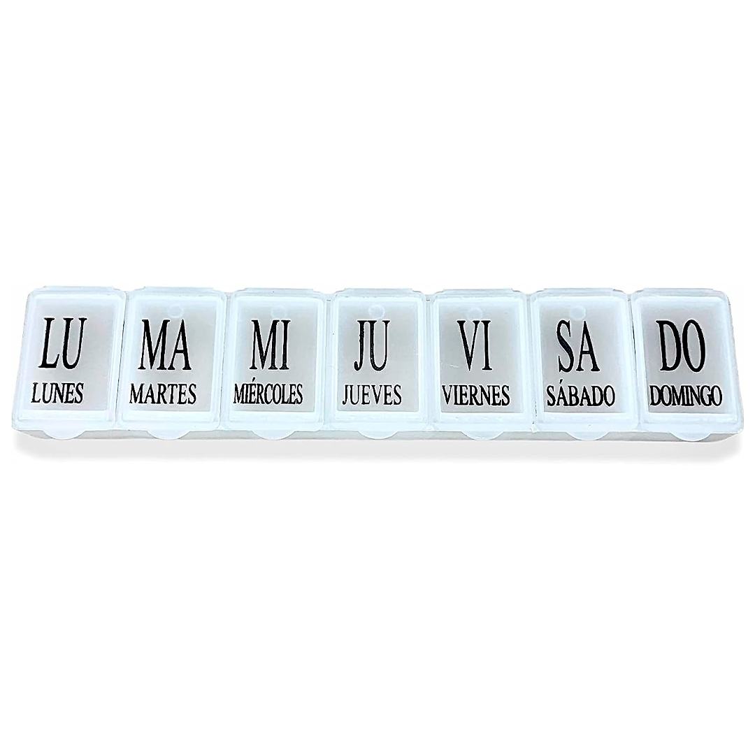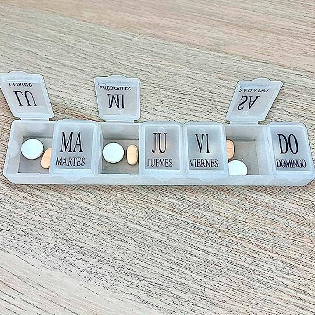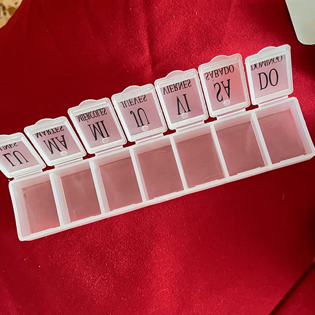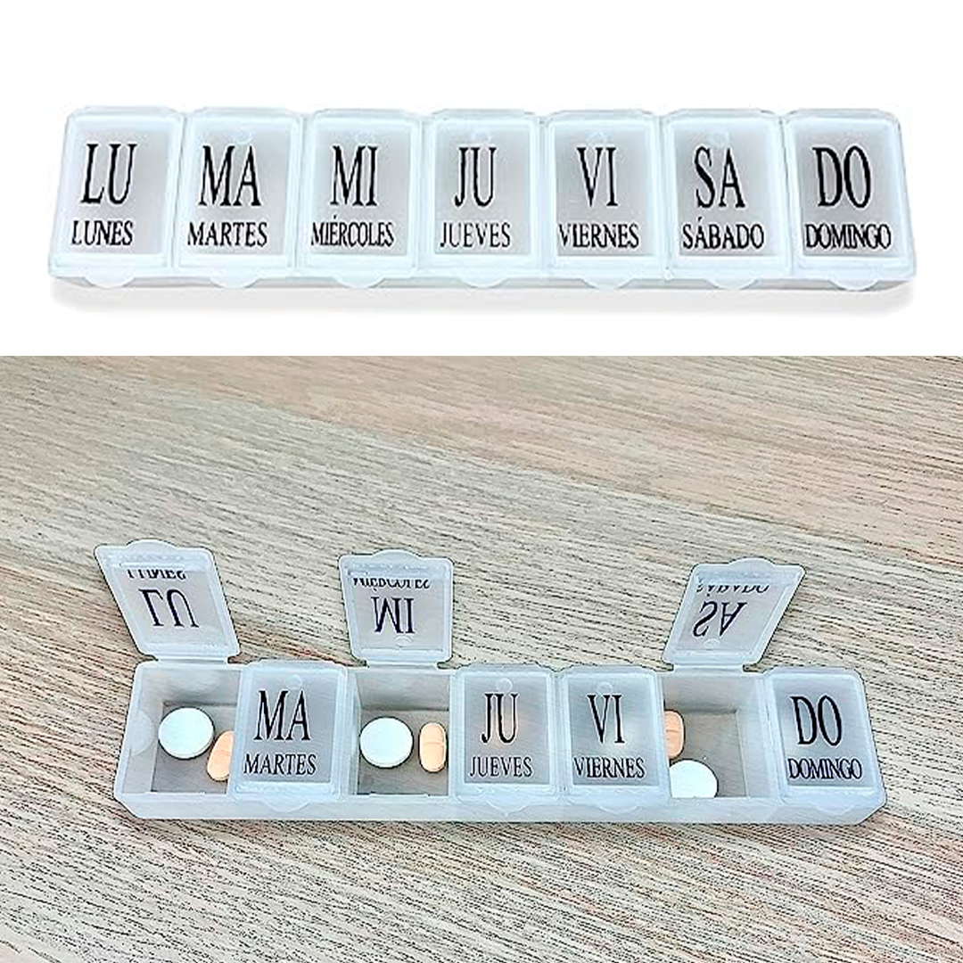 - Pastillero semanal con compartimentos para los 7 días de la semana