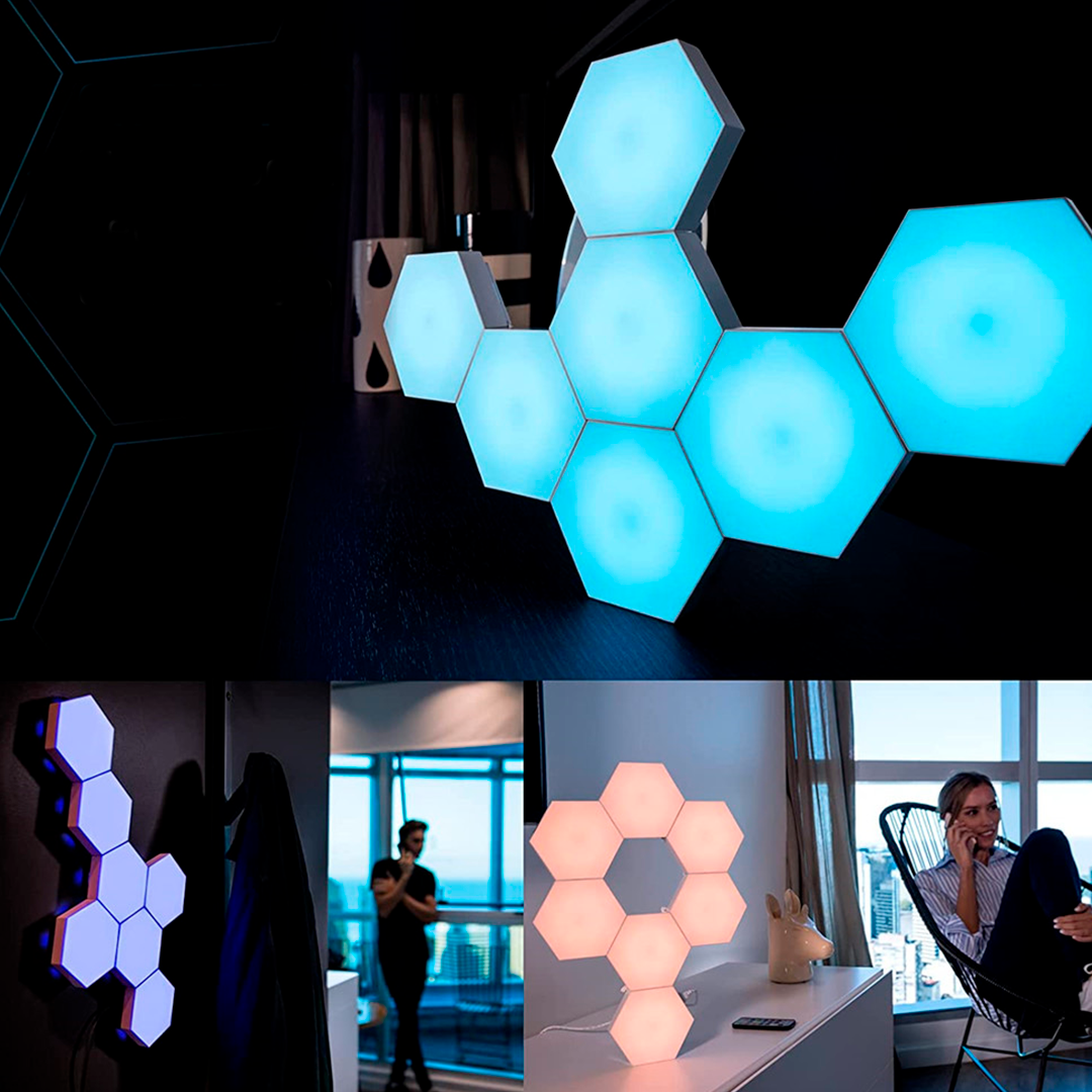 Diseña tus propias formas: Utiliza estas luces hexagonales rojas, verdes y azules para crear patrones geométricos LED interesantes en tu pared. Las luces LED avanzadas ofrecen colores vivos que destacan en la oscuridad.