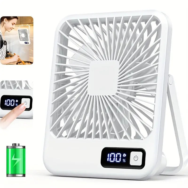 Con su batería de larga duración, te ofrece horas de ventilación sin interrupciones, permitiéndote disfrutar de un ambiente fresco en cualquier lugar. Su diseño compacto y ligero facilita su transporte, convirtiéndolo en el accesorio perfecto para llevar contigo a todas partes.